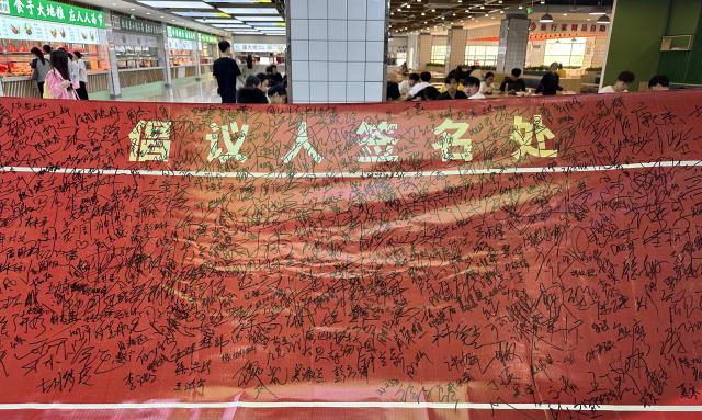 活动期间,就餐师生积极参与活动,并在《光盘行动倡议书》上签署自己的光盘承诺。