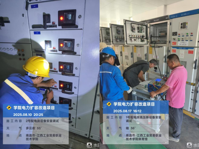 为不影响留校师生的临时用电,他们将大规模断电施工安排在凌晨12点至5点,白天则顶着高温进行线路检测和设备调试,“改造期间,手机都不敢离手,晚上睡觉不敢关机关网,以备一有突发情况立马赶到现场。”高压工程师王成指着改造后的高低压配电柜介绍道。此次电力扩容新建开闭所一个,增设电缆合计长度4979米,拆除老旧高、低压柜33台,新增高、低压设备43台。学院电力整体提升扩容改造一期项目,容量由原7490kVA升级至10790kVA,新增容量3300kVA,为学院供电提供有力保障。