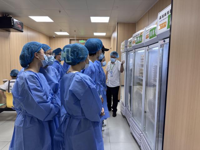 活动开始前,后勤工作人员早早备好防护套装与一次性手套,逐一发放给学生代表,并细致讲解参观纪律与安全须知。上午10时,后厨探秘正式开启,代表们分为3支队伍,在食堂管理人员与各食堂负责人的带领下,沿着“食材验收-储存-加工-烹饪-消毒”的全流程路线深入“幕后”。